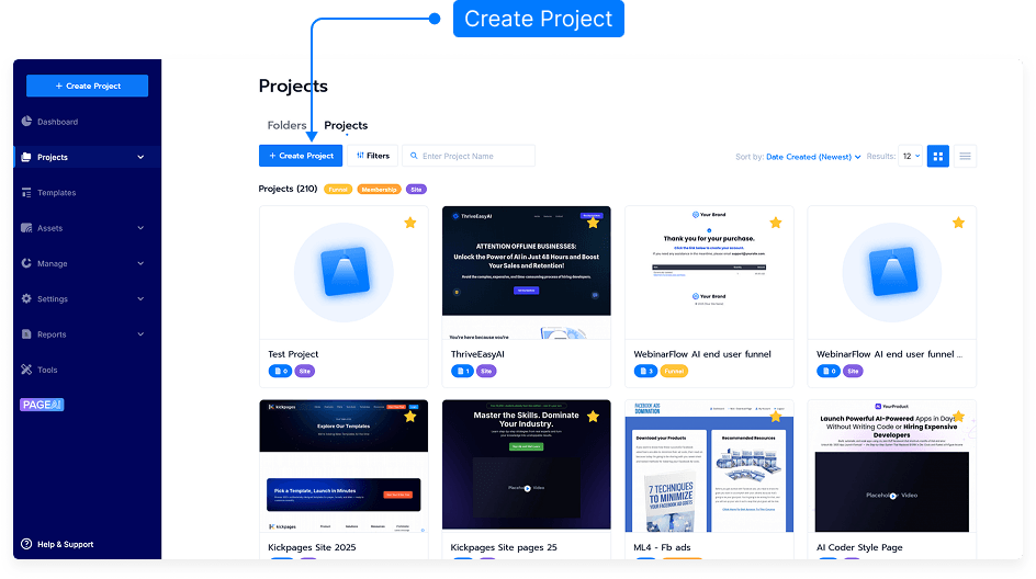 Creating a new project allows you to organize your pages and design work efficiently. Follow the simple steps below to create one.