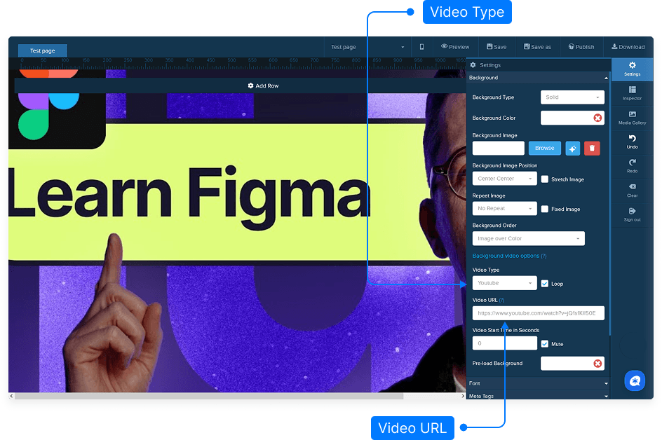 Follow these steps to add a video background to your page using the editor: