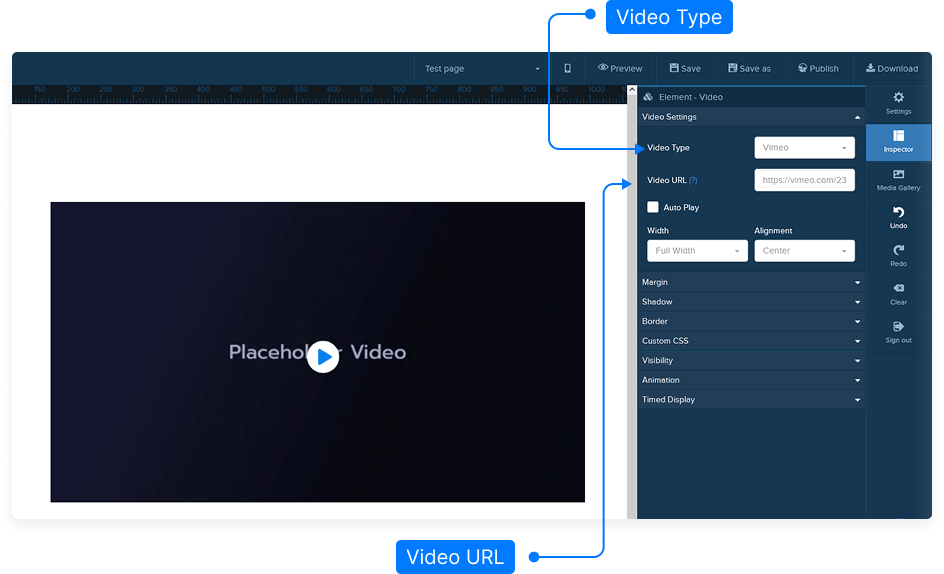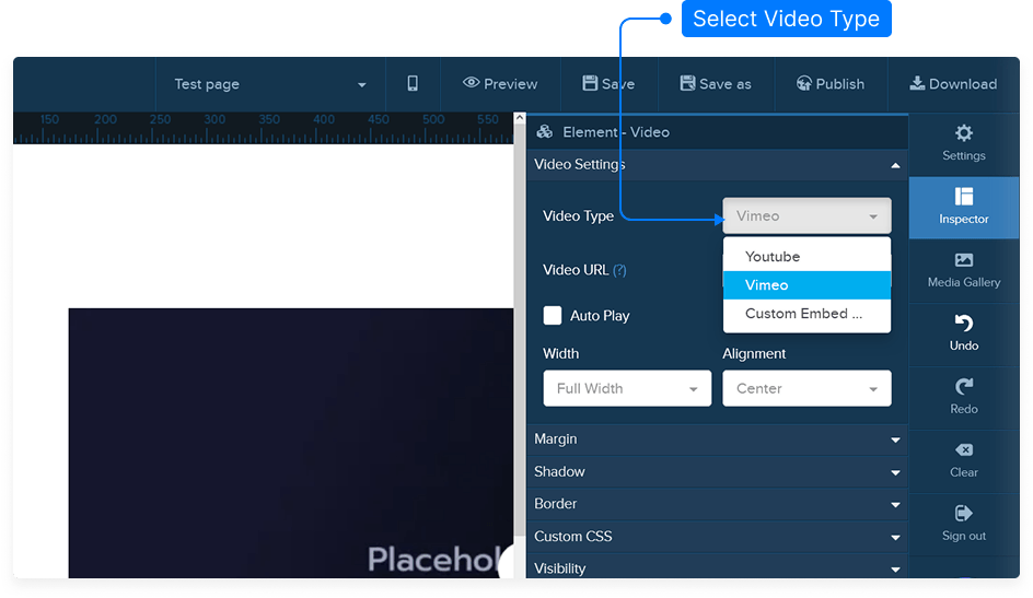 3. Return to the editor and select Vimeo from the Video Type menu.