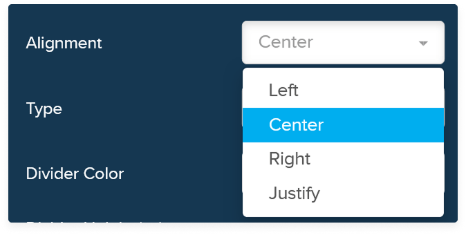 Justify – Stretches the divider across available space (only applicable for certain widths).
