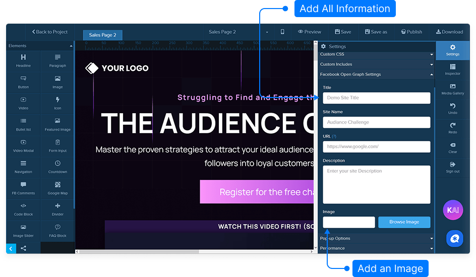 Follow these steps to properly set up your Facebook Open Graph information for your page. This ensures that your page preview looks professional and optimized when shared on Facebook.