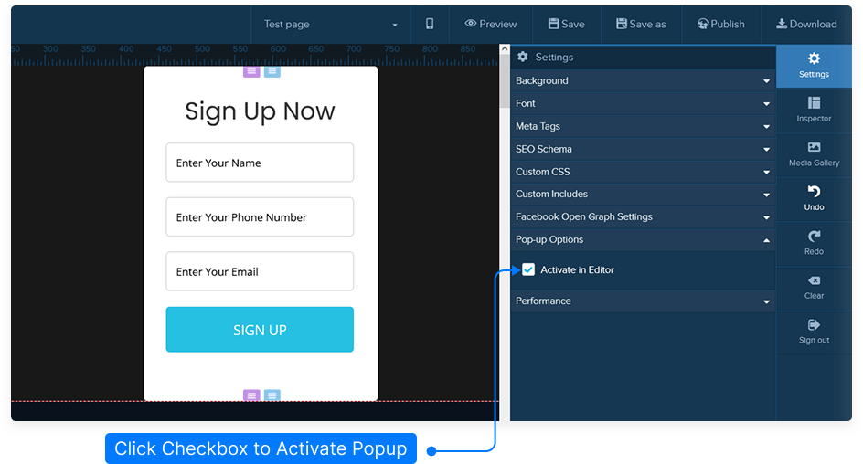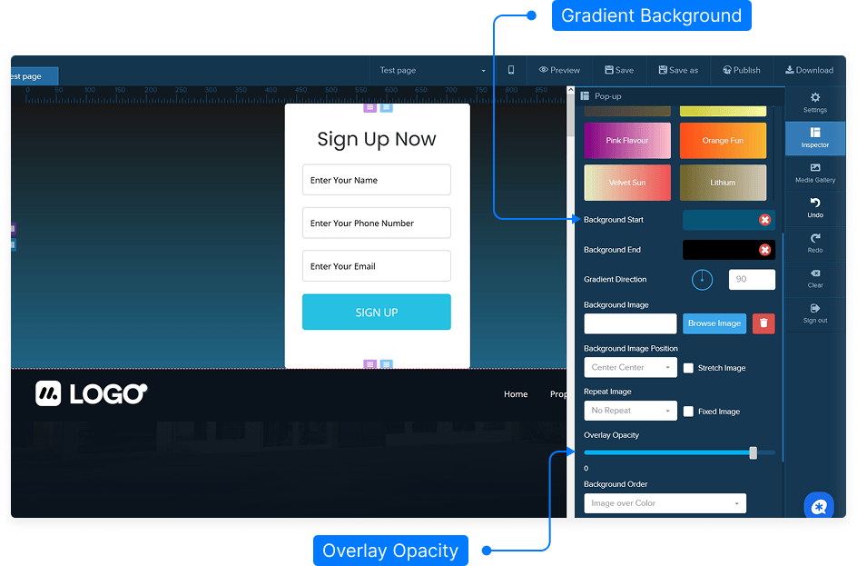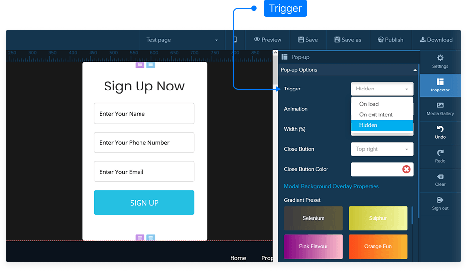 That’s it! You’ve successfully customized a pop-up element on your page, complete with animations, triggers, and background styling.
