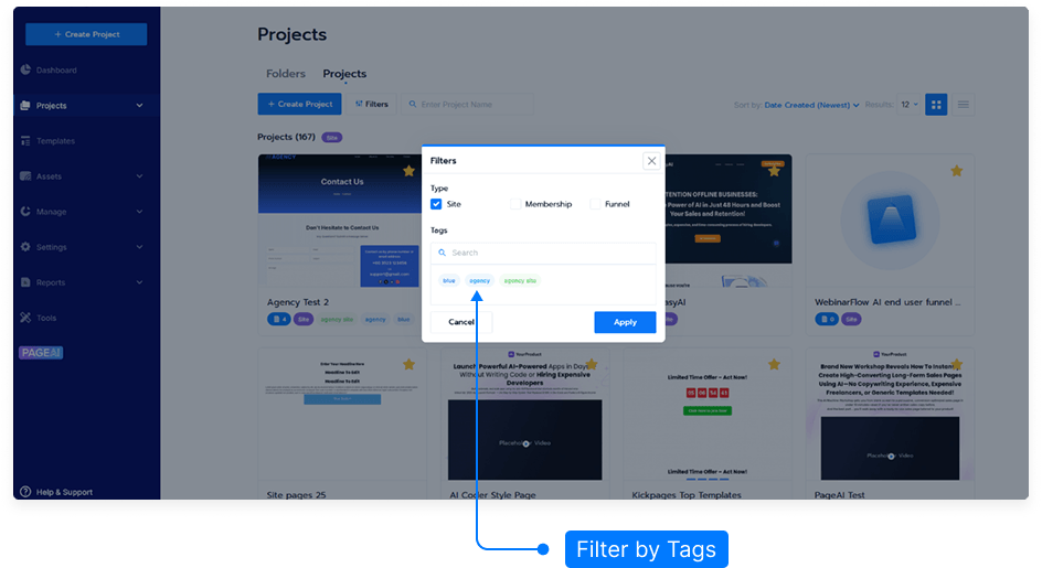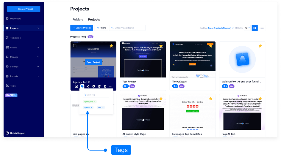 This tutorial will show you how to use the Tags feature to organize and quickly filter your projects. Tags make it easy to manage a large number of projects by grouping them under custom labels with colors of your choice.